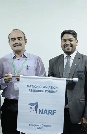 The National Aviation Research Forum (NARF) is a global platform headquartered in Bengaluru, India, with chapters across India and abroad. Founded by Mr. Joffin Jose (Chairman) and supported by Dr. Venkateswaran Raman (Vice Chairman), along with a global advisory council, NARF bridges the gap between academia and industry. It drives curriculum development, faculty mentoring, internships, certifications, business consulting, research, and innovation, fostering collaboration, professional growth, and sustainable advancement in aviation, travel, tourism, hospitality, and logistics.